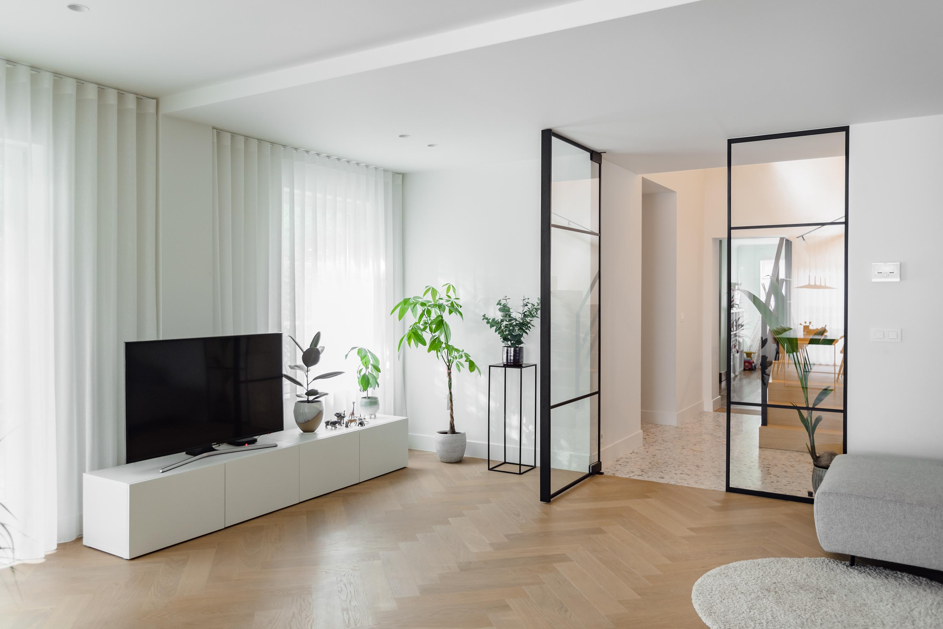 Wat aanvankelijk een beperkte opfrissing zou worden, evolueerde al snel naar een high-end renovatie waarin elk detail zorgvuldig werd hertekend. De volledige raampartij werd vernieuwd en constructief geoptimaliseerd, zodat ook een geïntegreerde zonnetent naadloos kon worden opgenomen in het ontwerp van het nieuwe terras. Binnen en buiten vloeien sindsdien harmonieus in elkaar over.