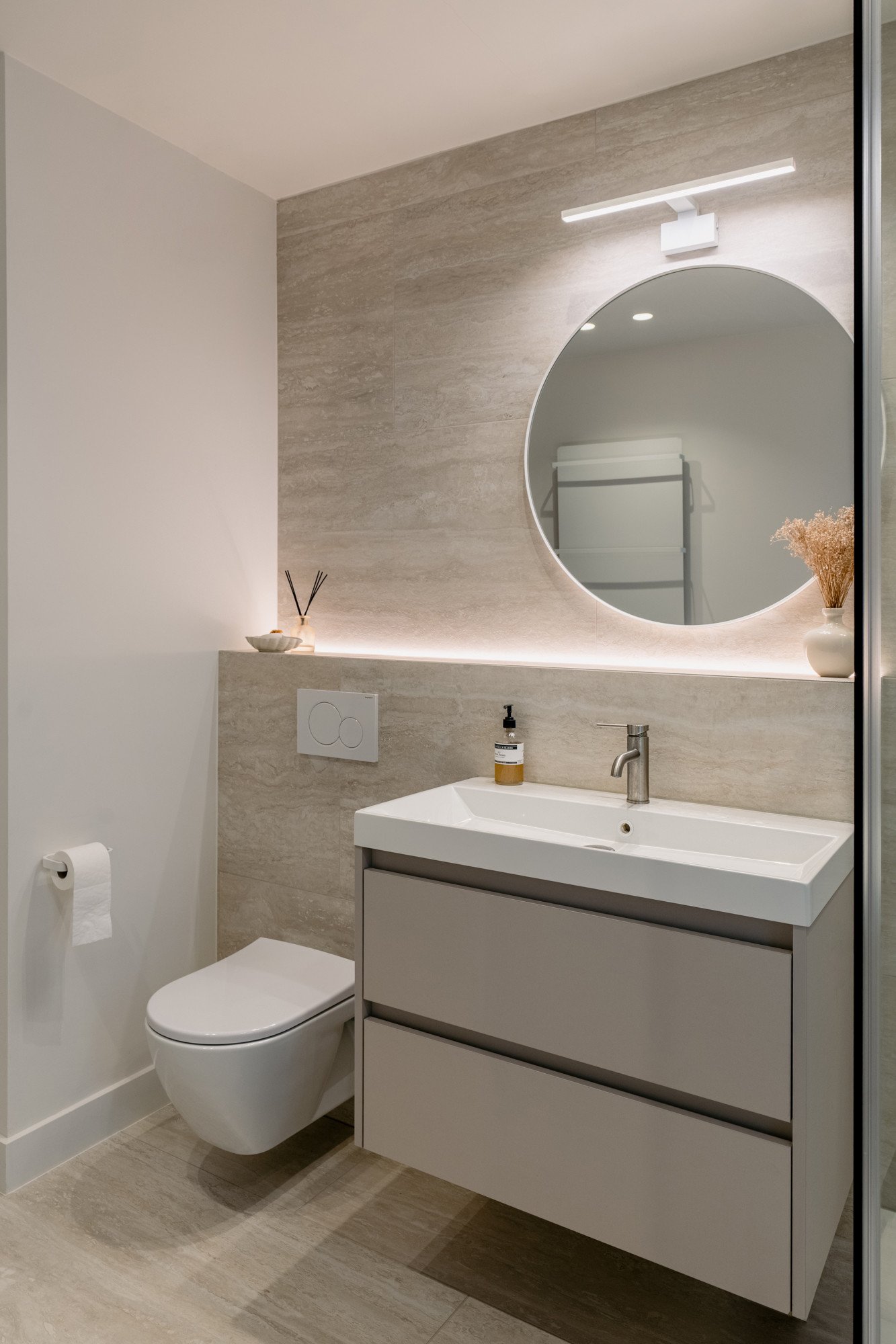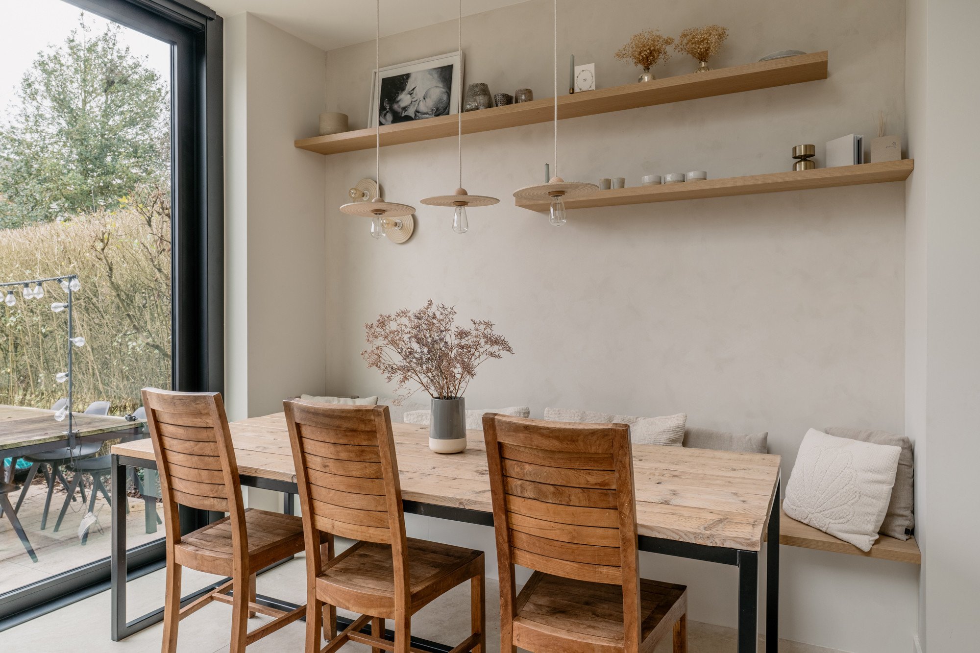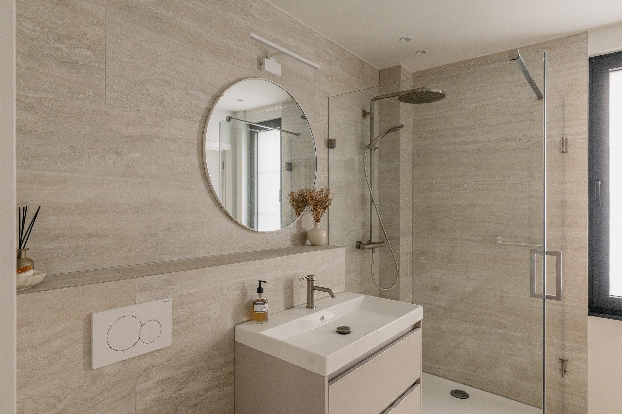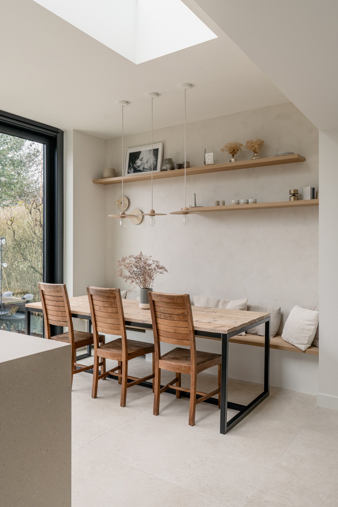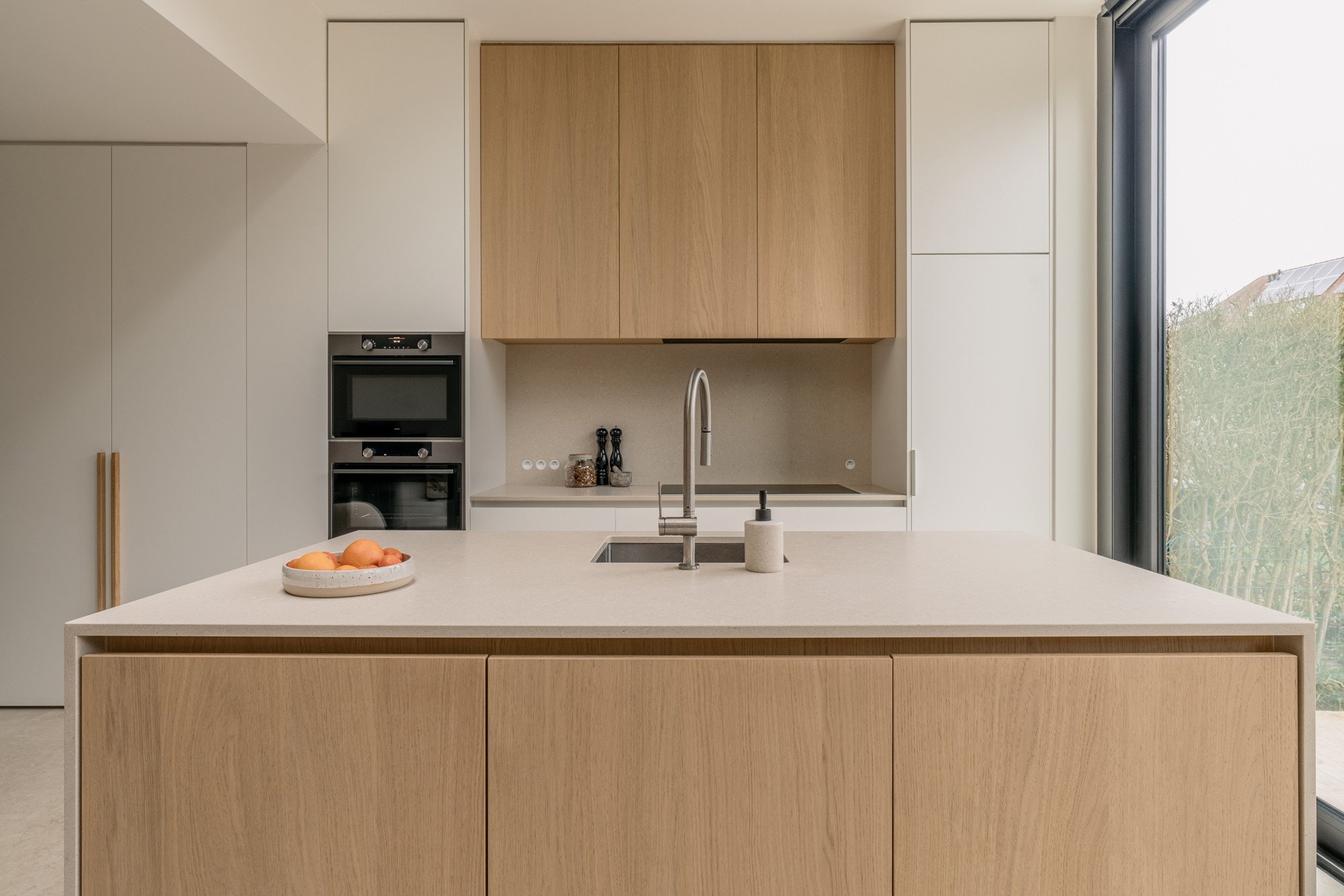 Deze bel-etage woning, oorspronkelijk voorzien van een oude veranda, kreeg een volledige make-over met een uitbouw en een compleet nieuw gelijkvloers. Door het plafond tot 3 meter te verhogen, ontstaat een gevoel van openheid en ruimte. Een strategisch geplaatste dakkoepel laat het daglicht doorstromen, waardoor de hele woonkamer baadt in natuurlijk licht. Lichte kleuren in het interieur zorgen voor rust en sereniteit te midden van de hectiek van een gezin. Het resultaat is een woning die precies aansluit bij de wensen van de bewoners, een woning die niet op de markt te vinden was.